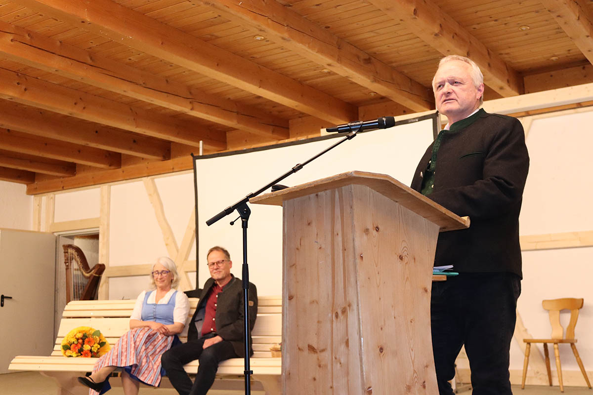 Nach dem offiziellen Teil der Aktionärsversammlung hielt Sepp Grundbacher, Landwirt aus Irschenberg, Musiker, Schauspieler und Hochzeitslader, eine Laudatio mit viel Humor auf die letzten 20 Jahre mit Klaus Schiller. Die „Auerberger Tanzlmusi“ begleitete den Abend musikalisch.